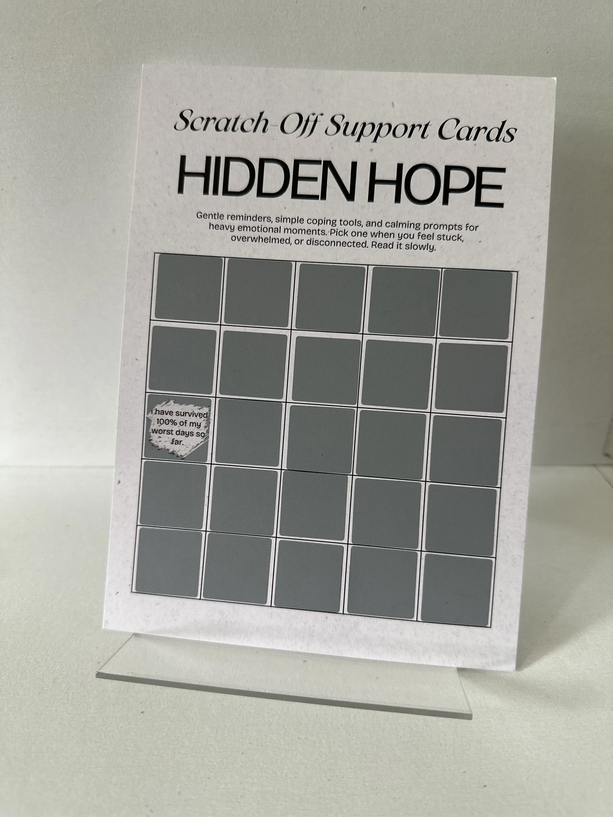 Card Decks: Printed on durable, matte-finish cardstock with rounded corners and soft-touch lamination for a calming, premium feel